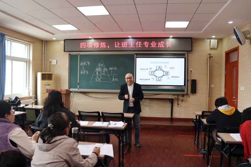 班主任是学校德育工作的灵魂,是学生成长路上的“引路人”,也是搭建学校、家庭、社会沟通的重要桥梁。为进一步提升学校班主任队伍的专业素养和育人能力,筑牢学校德育工作根基,10月17日下午,学校特邀请到丰台区教育科学研究院家庭教育指导服务中心刘建主任为全体班主任开展《四项修炼,让班主任专业成长》的专题培训,为班主任老师带来了一场兼具理论高度与实践深度的 “充电盛宴”。