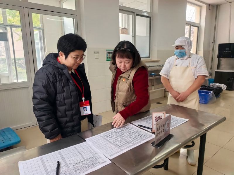 督导过程中,学校负责督导工作的张爽主任及负责食堂工作的许薇老师与张海燕督学进行了座谈交流。张海燕督学听取学校工作汇报,逐项查阅了食品采购台账、膳食监督委员会工作记录、AI教学课程设计、课堂实施案例、论文等资料,全面了解我校在食品安全“全链条”管理与人工智能教学“常态化”应用中的实践成果。随后,张海燕督学深入学校食堂,对食材储存、加工制作、餐具消毒、环境卫生等关键环节进行现场检查,对我校严谨规范的管理模式和创新务实的教学探索予以高度认可。