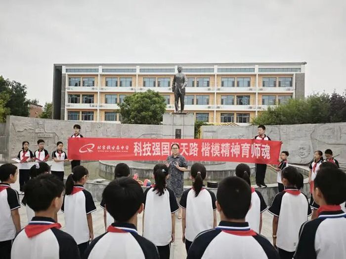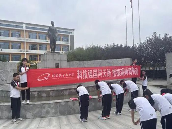 在第41个教师节这个意义非凡的日子里,北京钱学森中学启航班的同学们整齐列队,肃立于钱学森雕像前,隆重举行了一场庄严而温馨的拜师礼活动。
