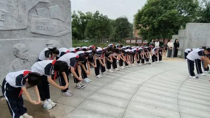 宣誓礼成,同学们整齐排列,向钱学森雕像行三鞠躬拜师礼。整个过程中,每个人神情庄重、目光坚定,在一口令一动作之间,传递出对师道的尊崇、对理想的执着。