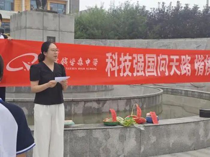 教师代表李勤老师登台发言,言语中满含对同学们的认可与期待,温暖而坚定。随后,全体同学在钱学森雕塑前庄严宣誓:“今日我以钱中为荣,来日钱中以我为耀!”这不仅仅是一句誓言,更是启航班每一位学子对未来的自我期许与坚定信念。