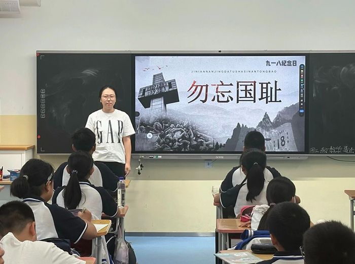 课堂上,授课教师李勤老师以丰富的史料为依托,通过图文、影像相结合的方式,生动再现了1931年“九一八”事变的历史背景与全过程。从日军蓄意制造柳条湖事件,到东北三省的迅速沦陷;从无数同胞的流离失所,到抗日志士的奋起反抗,一个个沉重的历史片段、一组组触目惊心的数据,让在场学生深刻感受到了那段山河破碎、民族危亡的苦难岁月,也让“落后就要挨打”的历史教训深植于心。