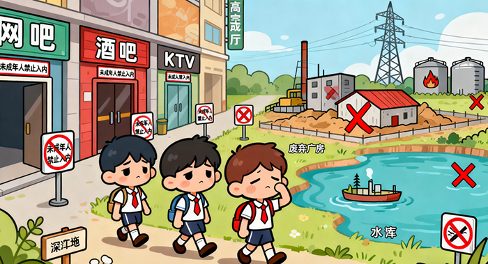 1远离危险场所:不前往网吧、酒吧、KTV、游戏机厅等不适宜未成年人进入的场所,不进入施工工地、废弃厂房、深潭、水库等危险区域。在户外游玩时,远离高压电塔、易燃易爆仓库等危险设施。