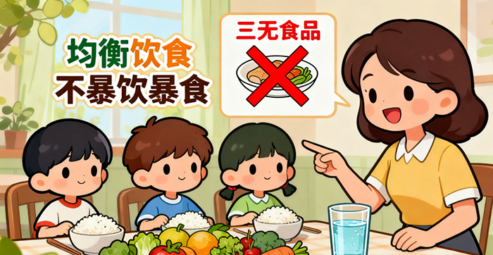 2合理饮食,预防疾病:注意饮食卫生,不购买和食用“三无”食品(无生产日期、无质量合格证、无生产厂家),不食用过期、变质、生冷、不洁的食物,防止食物中毒。合理安排饮食,均衡营养,不暴饮暴食,少吃辛辣、油腻、甜食等刺激性食物,多吃新鲜蔬菜水果,保证充足的饮水。