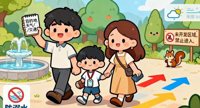 3注意旅途安全:假期若随家长外出旅游,要提前了解目的地的天气、交通、治安等情况,做好出行规划。在景区游玩时,要遵守景区规定,不擅自离开团队,不前往未开发或禁止进入的区域,避免发生迷路、坠落、溺水等危险。同时,妥善保管好个人财物,如身份证、学生证、手机、钱包等,防止丢失或被盗。