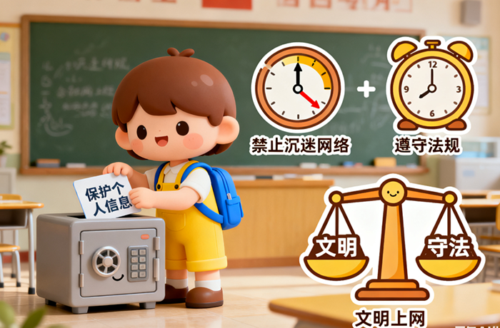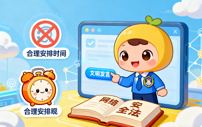 1文明上网,遵守规则:合理安排上网时间,不沉迷网络游戏、短视频等,避免长时间使用电子产品,保护眼睛健康。上网时要遵守网络道德和法律法规,不浏览不良信息,不传播谣言、暴力、色情等有害内容,不发表不当言论,不参与网络赌博、网络欺凌等违法违规活动。