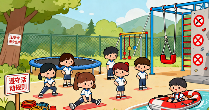 2注意娱乐活动安全:进行户外运动或游戏时,要做好热身准备,选择安全的场地和器材,遵守活动规则,避免发生摔倒、碰撞、扭伤等意外事故。不参与危险的娱乐项目,如无安全保障的蹦极、攀岩、漂流等。