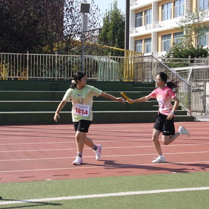 短跑赛场上,发令枪响,选手如离弦之箭,转瞬冲线;长跑征程中,汗水浸衣,脚步依旧坚定,向着终点稳步前行;接力赛中,交接棒间默契流转,团队力量在呐喊中迸发;实心球投掷区,蓄力、发力,优美的弧线挑战着更远的距离;跳远沙坑前,助跑、起跳、落地,每一跃都力求突破。赛场之上,速度、耐力、协作与力量交织,每一份全力以赴,都闪耀着青春的光芒。