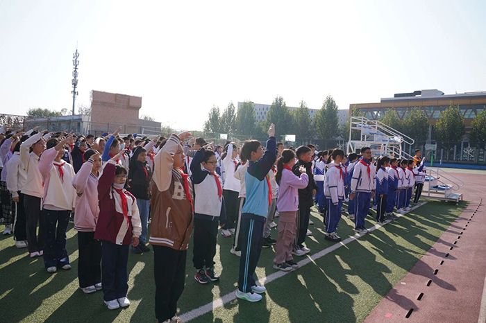 2025年10月13日,秋阳和煦,金风送爽。北京钱学森中学全体师生齐聚操场,举行了一场庄严而富有深意的升旗仪式。伴随着雄壮的《义勇军进行曲》,鲜艳的五星红旗冉冉升起,迎风飘扬。全体师生肃立行注目礼,崇高的爱国情怀与作为钱学森传人的使命感在每个人心中激荡。此次仪式恰逢人民科学家钱学森归国70周年,师生们以国旗为证,重温钱学森精神,共话新时代青年的责任与理想。