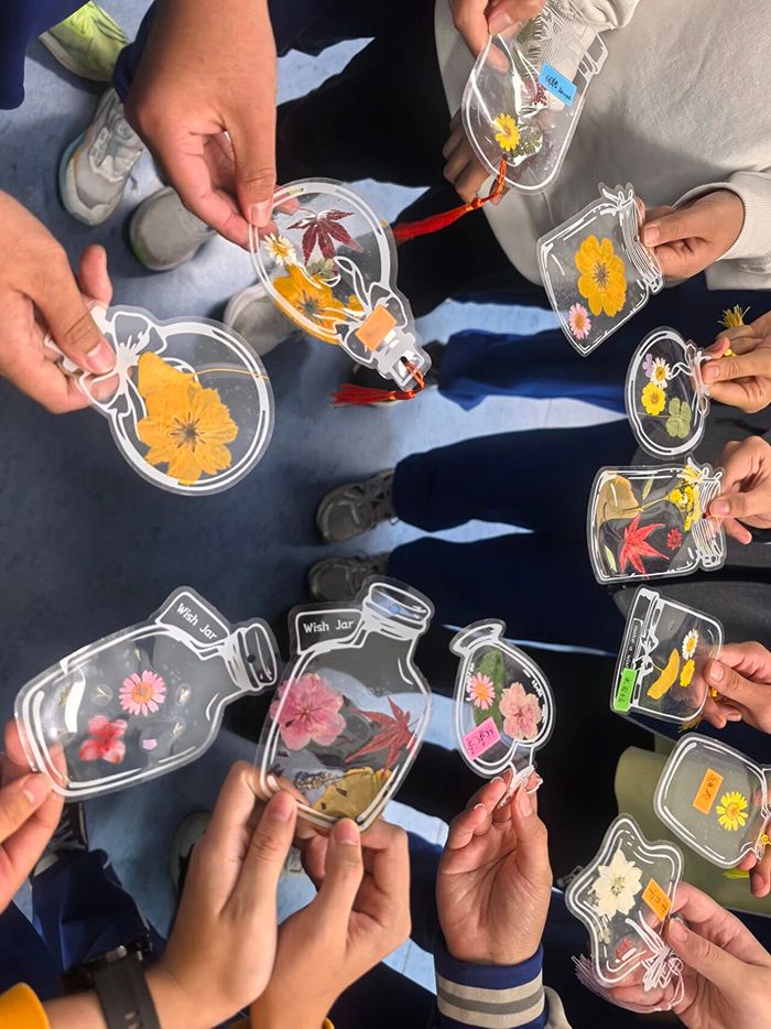当秋风拂过校园,染就一树绚烂,也洒下满地诗意。我们该如何将这转瞬即逝的秋日之美长久珍藏?在周五下午的综合实践课上,初二年级的同学们在生物吕老师的带领下,用一场别开生面的手工课给出了答案——将散落的花叶、完整的秋天,精心封存于一方透明的书签中。