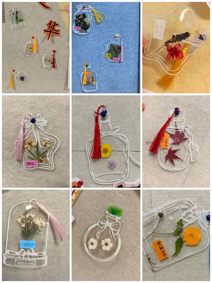 随着最后一步完成,塑料膜缓缓压实,将这些干燥而脆弱的植物永久定格在透明的“时空胶囊”之中。原本零散的自然素材,瞬间蜕变为精美的书签。活动现场惊叹与欢笑不断,同学们互相展示着彼此的作品,脸上洋溢着亲手创造带来的满足与喜悦。这堂综合实践课,让大家在紧张的课业中放松了身心,真切感受到了手作的温度与自然的宁静。