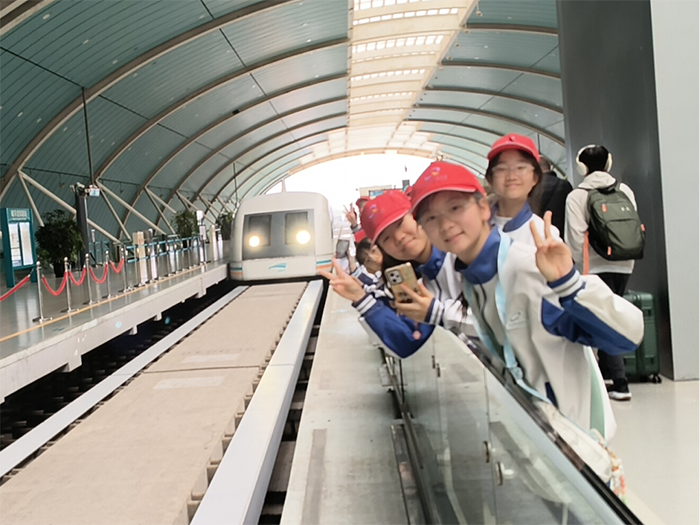 最让同学们兴奋的环节,莫过于亲身乘坐磁悬浮列车。当列车缓缓启动,速度不断攀升,窗外的景物飞速倒退,而车厢内却平稳舒适。“太快了!太神奇了!”同学们难掩激动之情,纷纷记录下这一难忘的体验。