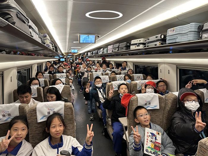 清晨的北京南站,天刚破晓,研学团的同学们便带着饱满的热情集结完毕。车厢内,同学们自发交流着钱学森先生冲破重重阻碍归国奉献的生平事迹,分享着提前查阅的上海红色历史与科技发展资料,原本漫长的旅途因共同的信仰与追求而充满意义,为整场研学活动奠定了浓厚的学习氛围。
