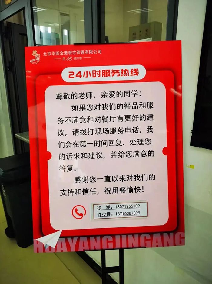 师生们在食堂就餐过程中遇到任何问题,可以向现场陪餐领导直接反映,也可以告知班主任老师、膳食委员会代表或班级生活委员,还可以拨打学校食品安全热线电话67952155转2402。欢迎广大师生和家长对学校食品安全进行监督,不断提高饭菜质量和服务水平。