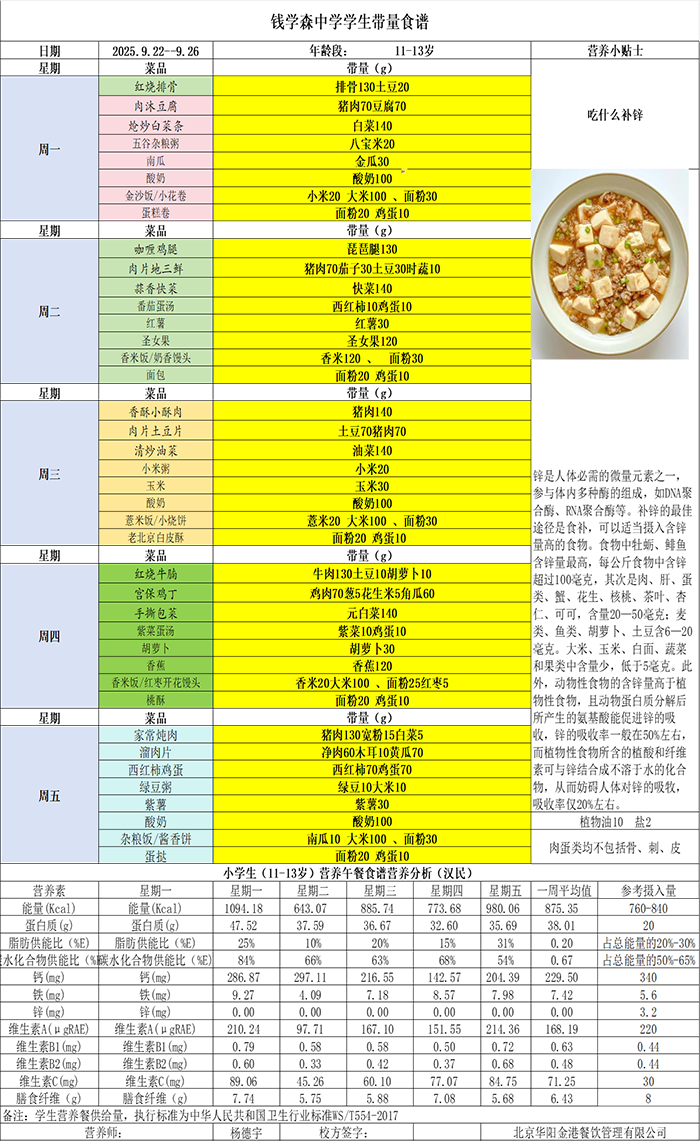 小学食谱