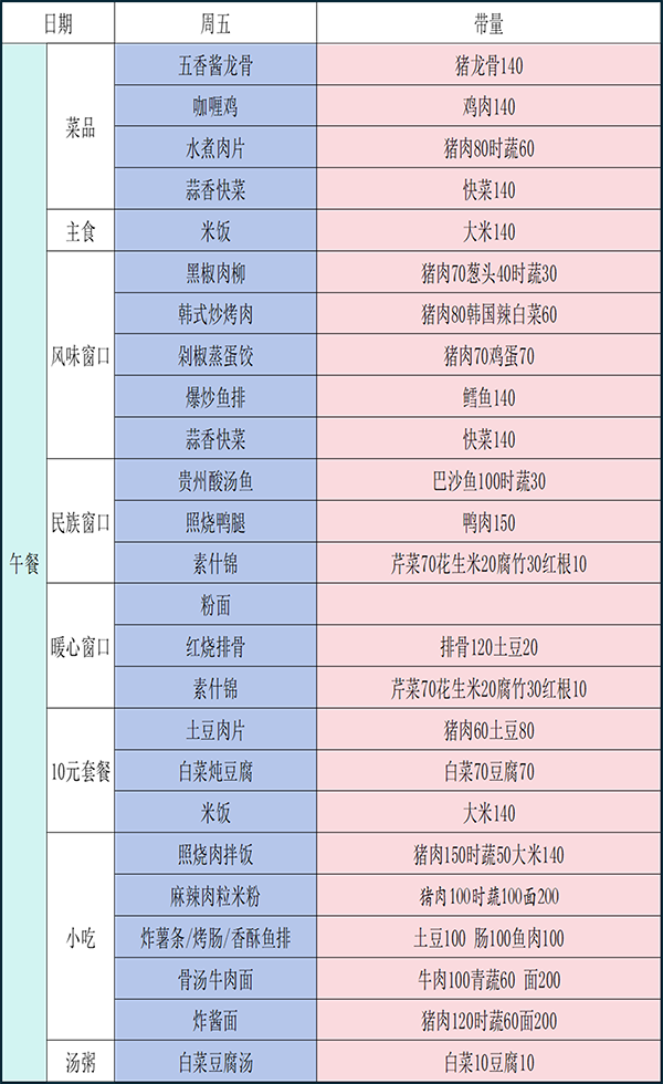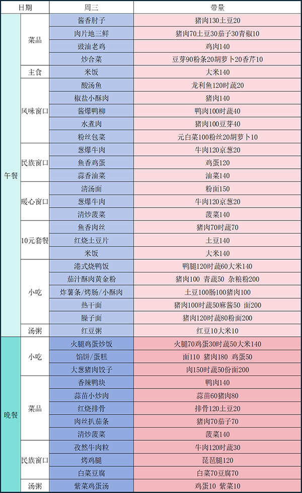 钱中一周食谱早知道(第十三周)