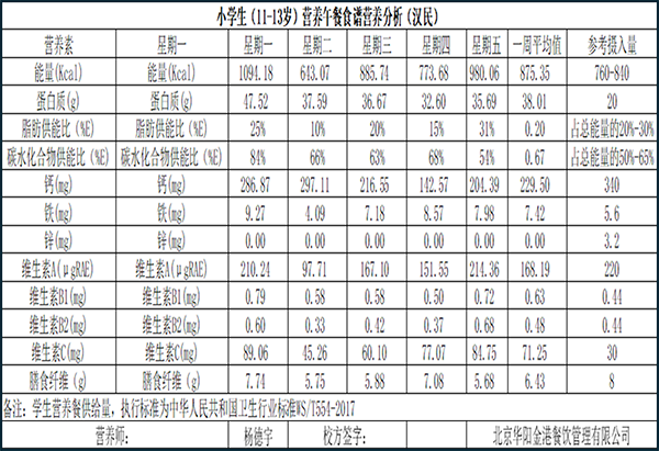 小学食谱