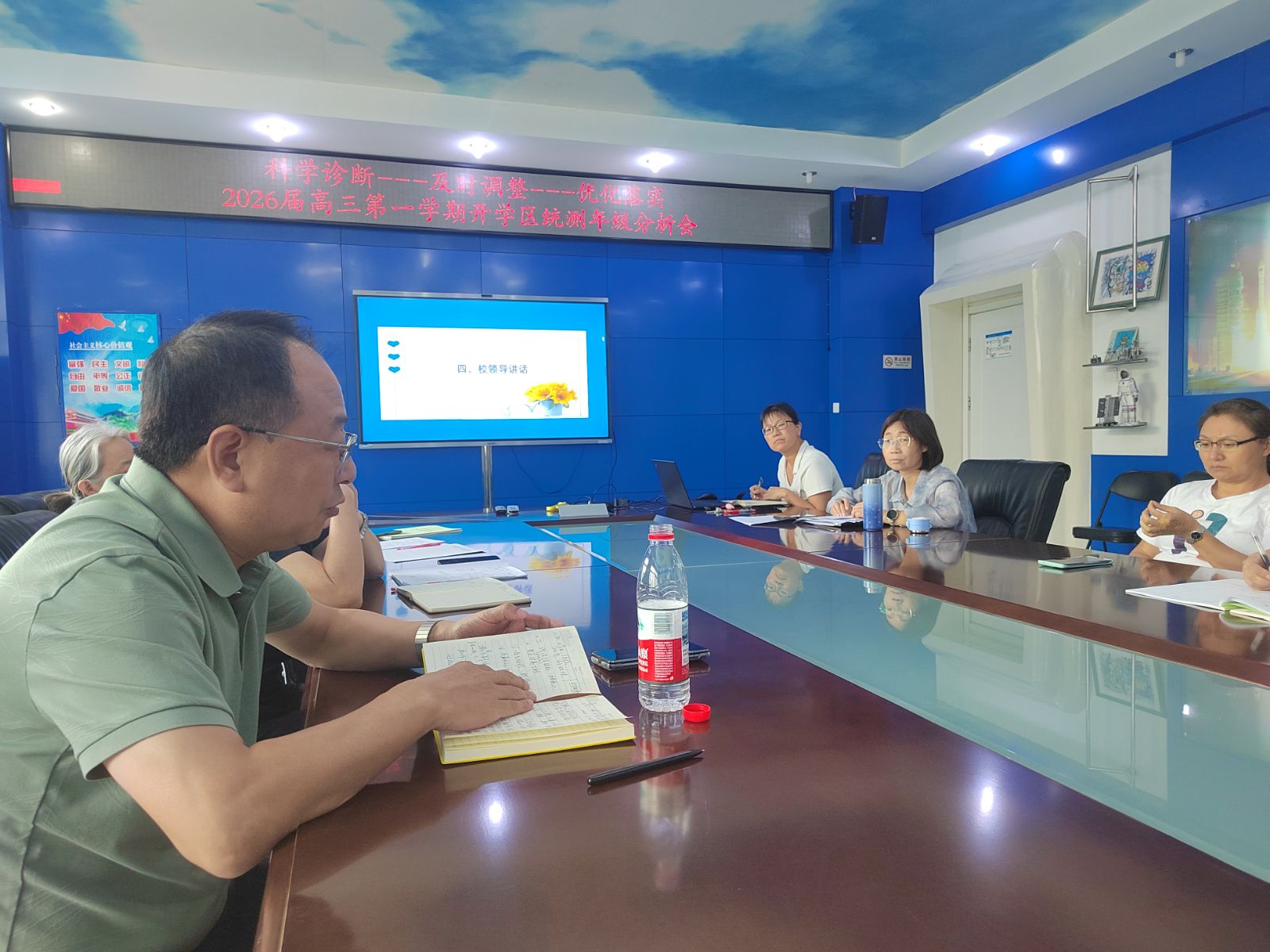 为精准把脉高三学情,明确下一阶段教学重点,九月份2026届高三年级召开了开学区统测成绩分析会。会议由年级组统一组织,全体高三教师参加,校区还邀请了李鹏举校长到会指导。