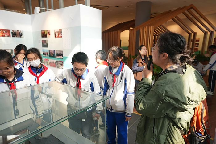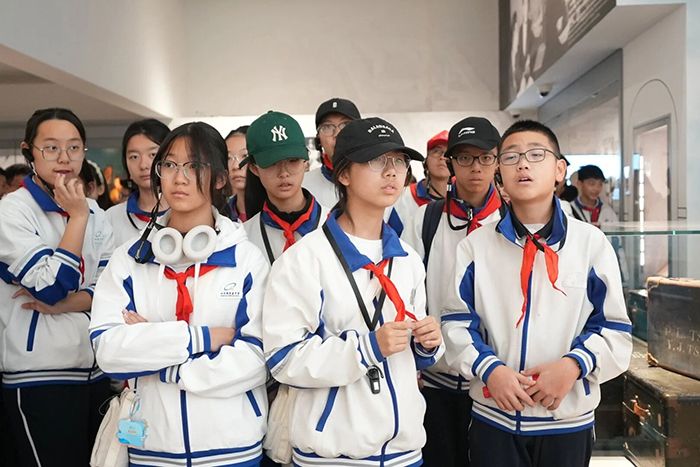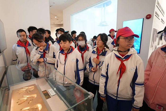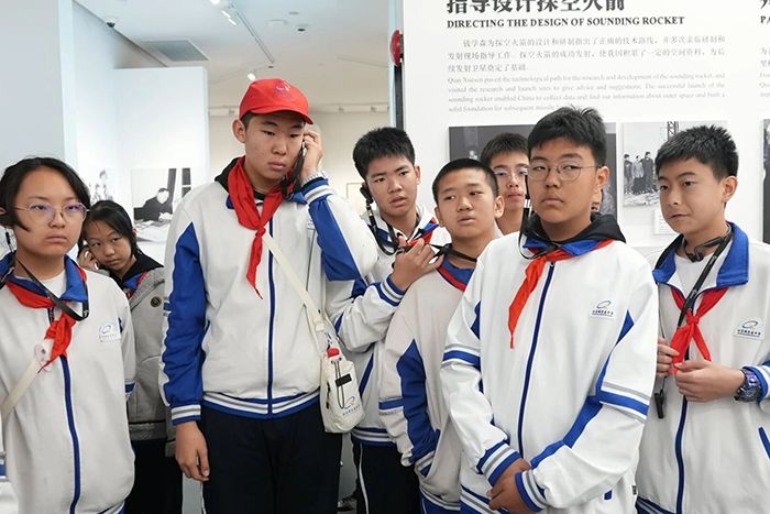 在讲解老师的细致引导下,大家驻足于泛黄的演算手稿前,凝视着标注密密麻麻的公式,仿佛触摸到先生伏案钻研的日夜;在还原的书房场景中,端详着陈旧的书桌与书架,静静感受那份淡泊名利、潜心治学的赤诚;驻足“两弹一星”相关展区,聆听着惊心动魄的攻关故事,崇敬之情在每个人心中油然而生。