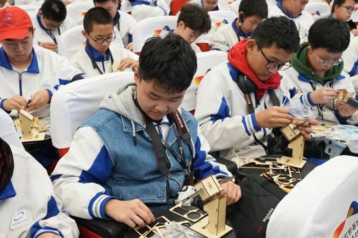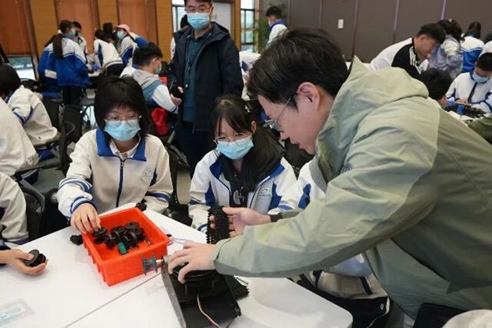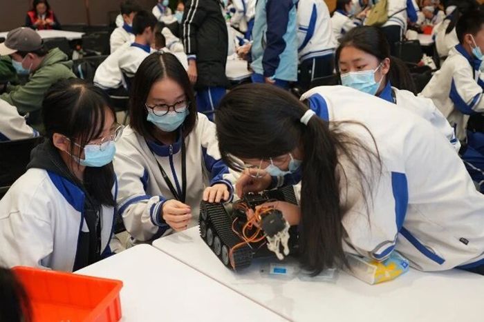 大家分成小组轮转体验,最让人热血沸腾的是动手组装机械臂履带车。大家围坐一桌,分工协作,有的专注拧螺丝,有的细心装履带,指尖触碰着冰凉的零件,仿佛与科技的脉搏同频共振。原本只在课本中见过的“机器人原理”,在亲手操作中变得鲜活可感,每一个成功拼接的零件,都凝聚着大家的专注与喜悦。