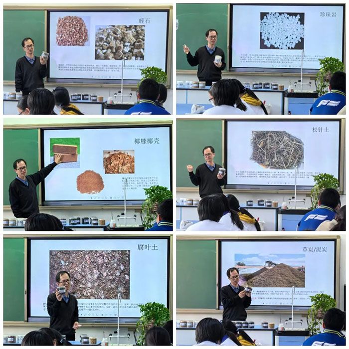 11月25日的生物选修课,金都园林的于祥民老师给同学们带来了一场深入浅出的植物营养以及基质配置的知识分享,并带领同学们亲手调配了专属营养土,将理论与实践融为一体。