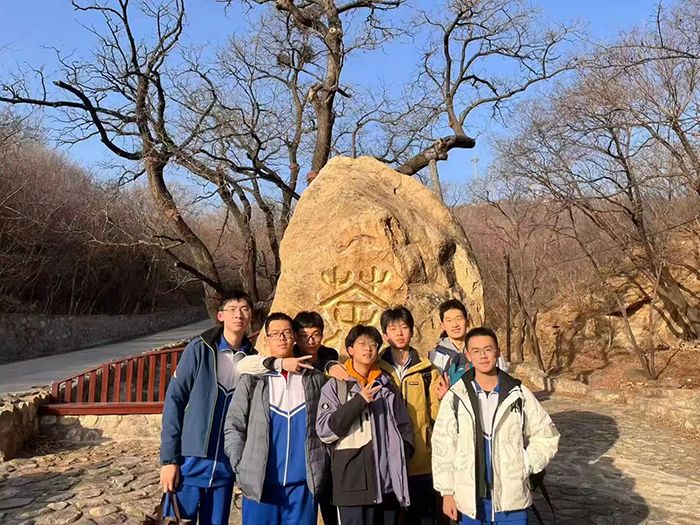 第三站,山顶鬼笑石。尽管上山时很累,但同学们一路扶持,坚持前行。当最终携手登顶,同学们站在鬼笑石旁,凭栏远眺,北京城的壮阔画卷尽收眼底。山风呼啸,似在为同学们的不懈精神喝彩。“会当凌绝顶,一览众山小”的豪情,与征服险阻后的畅快笑声,在山谷间回荡。同学们在山顶合影留念,记录下青春中的难忘瞬间。这一刻,学业上的“高山”似乎也变得可以企及,青春的视野与胸襟,在此刻被无限拓宽。一路上山克服了身体上的疲劳,在精神上也得到了激励。