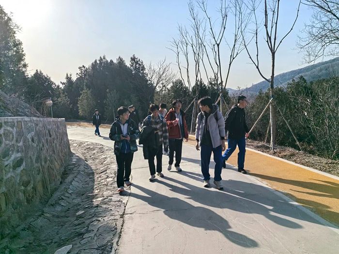 一路上,同学们的欢声笑语奠定了本次出行的欢乐基调。在西山脚下,每班同学分成几个小组,开始了今日的西山打卡活动。