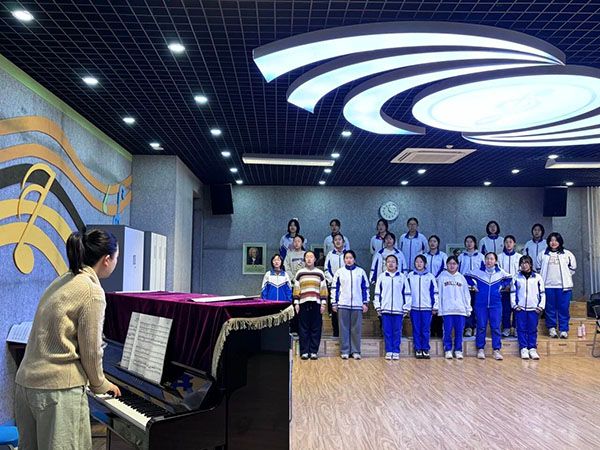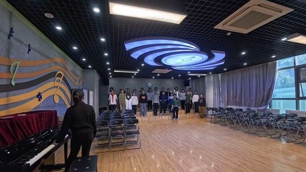 合唱团的课堂上,总是充满着欢声笑语与悠扬旋律。学校特别聘请了专业的音乐老师担任指导,从最基础的发声练习、气息控制教起,耐心纠正同学们的演唱姿势和发音技巧。“吸气要轻,发音要准……”老师的谆谆教导,让同学们逐渐掌握了歌唱的要领。从生疏的音阶练习,到整齐的二声部合唱,同学们在一次次的排练中不断进步。