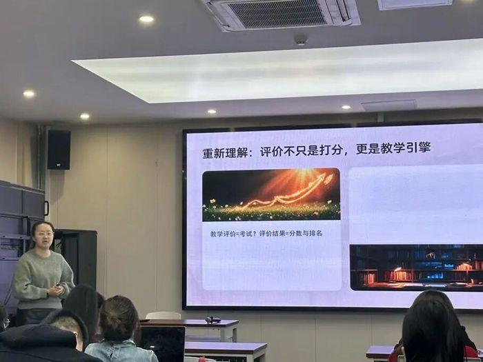 王松环老师重新定义了评价功,强调评价不是简单的“打分排名”,而是推动教学优化与学生成长的“引擎”。她分享了评价功的五个核心维度:开展课前-课中-课后的持续性评价、基于学生表现的精准反馈、对课程内容的反思、对学情的把握以及对教学策略的迭代。同时给出实用建议:从一个单元入手设计评价量表,善用AI工具与问卷星提升评价效率,关注学生的进步幅度,让评价真正服务于“以评促教、以评促学”。