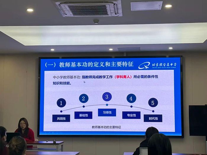 在2025年“北京市中小学教师基本功培训与展示活动”中,北京钱学森中学付明月、王松环、刘阳、凌婧瑶、王博文、于新茹六位青年教师表现卓越,斩获多项荣誉,这不仅是个人能力的证明,更形成了强大的榜样力量。为助力青年教师夯实专业根基、提升教学素养,2025年12月23日,北京钱学森中学开展2025-2026学年第一学期第五次青年教师研修活动。本次活动由郭春红主任主持,研修内容聚焦教师“六功”核心能力,通过对“六功”解读、获奖教师“六功”经验分享的形式,为教师搭建了互学互鉴、共同成长的平台,让每一位参与者都收获了满满的教学智慧与实践方法。