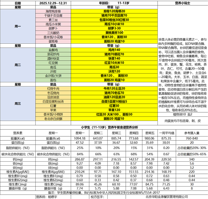 小学食谱