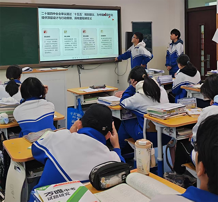 在各班设置的“展望我的‘十五五’”分享环节,同学们结合自身实际,畅谈如何将个人成长规划与国家发展蓝图相结合。“我关注到‘十五五’规划特别强调科技自立自强,这与我的兴趣方向一致。”立志从事科学研究的同学说,“我希望通过努力学习,将来能在人工智能或生物科技领域有所贡献。”许多同学表示,通过这次活动,他们不仅了解了国家未来五年的发展方向,也看到了自己在这一进程中的位置和责任。