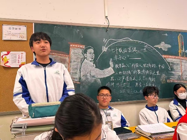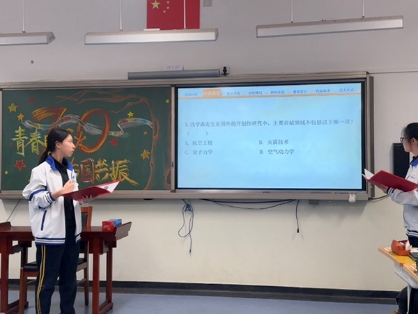 随后,自编自演情景剧《归心》将班会推向高潮。剧中再现钱学森在美国遭遇软禁、面对诱惑与威胁仍矢志归国的历史片段。演员真挚的表演让台下同学屏息凝神,掌声里饱含敬意。表演结束后,主持人引导大家讨论:“在钱学森面对的所有困难中,你认为最难以克服的是什么?”同学们纷纷发言,从个人安危、家庭牵挂到理想坚守,多角度体会钱老那份矢志不渝的报国赤诚。