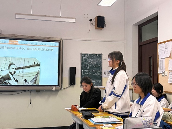 班会尾声,班主任曹文菁老师深情总结:“孩子们,今天我们共同追溯了钱学森先生七秩归国路,感受了他的一生报国心,我们看到,个人的理想,只有融入国家的命运,才能放出最耀眼的光芒。大家作为高一学子,你们此刻的青春,正与中华民族伟大复兴的历史进程同频共振!愿你们在课堂的专注中积蓄力量,在人生抉择中也不忘家国担当,愿你们青春的星火,汇入民族的星河,照亮我们这个国家更加辉煌的未来!”她鼓励大家以钱学森为镜,校准人生方向,将个人理想融入国家发展的洪流。