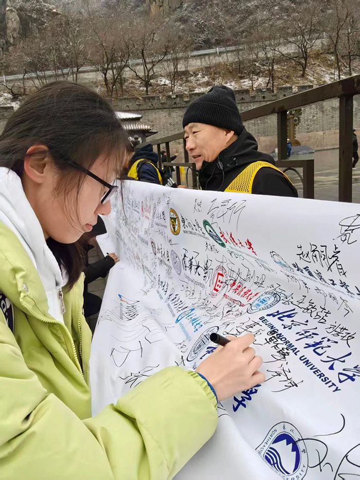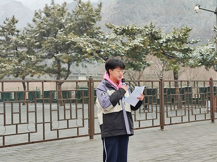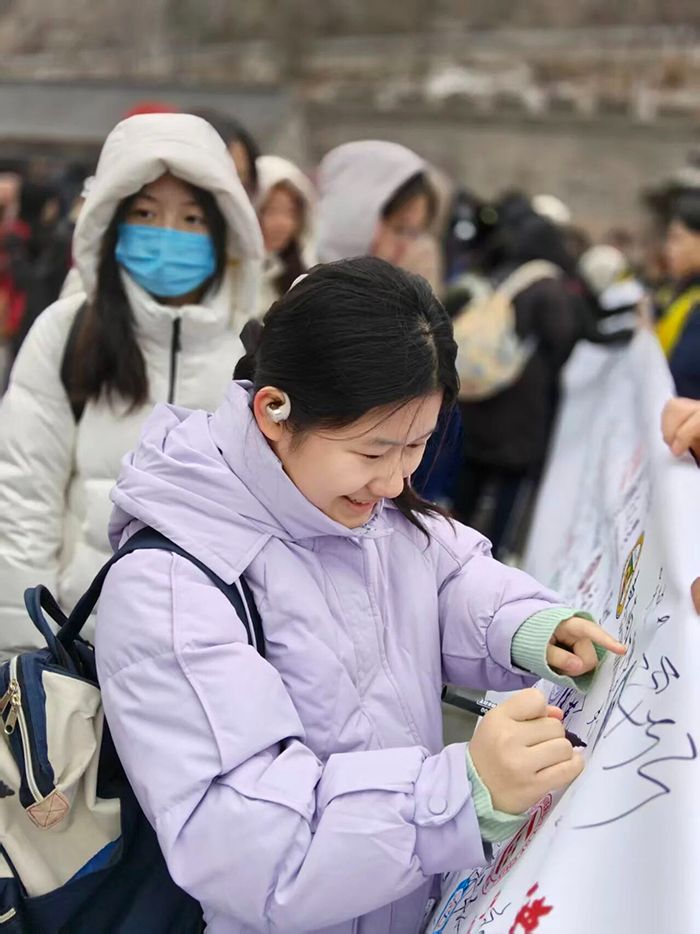接下来,全体高三学子在王岭书记的带领下,以长城为证庄严宣誓。“长城如龙,蜿蜒岁月荣光。雄关漫道,铺就筑梦方向。”“苦读百日,锐不可当!”铿锵有力的誓言响彻长城山谷,与风雪共鸣,凝聚着少年们决战高考的坚定信念,彰显着他们破釜沉舟的勇气与决心,每一句誓言都饱含着青春的热血与担当。