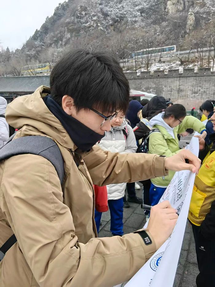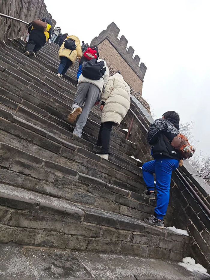同学们以班级为单位分组登长城,开启了一场兼具挑战与意义的攀登之旅。沿途精心设置了3个打卡点,既是对同学们体力与意志的考验,也是对大家协作能力的锤炼。攀登过程中,同学们相互鼓励、彼此搀扶,迎着小雪奋勇向上,一步一步向着长城顶端迈进,在攀登中磨砺意志,在坚持中凝聚力量,将“勇攀高峰”的长城精神融入高考冲刺的信念之中。
