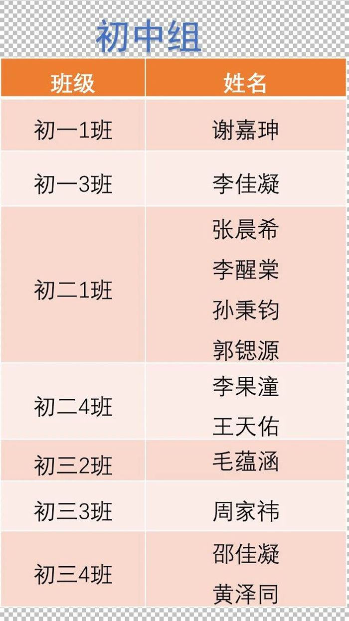 初三4班 黄泽同 第一名