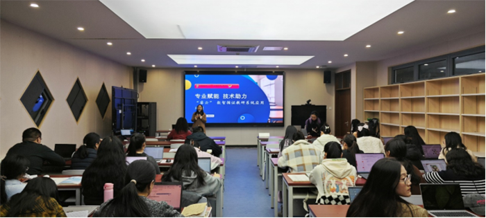 随后,来自教研网的王秋平老师为全体青年教师带来《专业赋能,技术助力——“睿云”数智循证教研系统应用培训》专题讲座。
