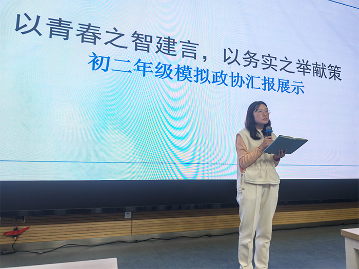 此次模拟政协课程汇报活动,是八年级模拟政协系统课程的成果收官。作为学校打造“行走的大思政课”的重要载体,这门课程既是落实立德树人根本任务、深化素质教育的生动实践,也让同学们在沉浸式体验中真切感知全过程人民民主的内涵,切实增强了社会责任感与公共参与意识。青春的声音虽稚嫩,却充满力量;少年的思考虽青涩,却承载希望。相信这些凝聚着智慧与担当的“青春提案”,将激励更多同学以实际行动关注社会、服务他人,让青春在为祖国、为人民的奉献中绽放绚丽之花。