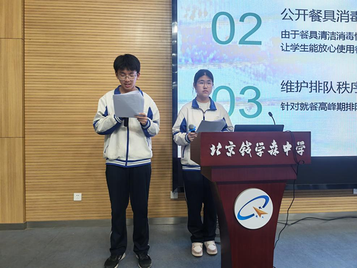 聚焦师生日常出行痛点,初二(2)班《北京钱学森中学东门周边交通拥堵问题提案》引发了在场师生的强烈共鸣。小组通过实地观察、问卷调查,梳理出上下学高峰人车混行、临时停车位不足等核心问题,并提出分时段管控、优化通行路线等一系列可行性建议,用青春智慧为解决“校门口的烦恼”贡献方案。