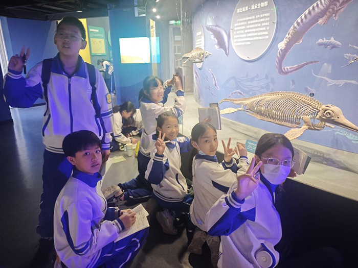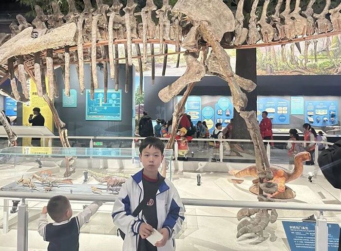 走进展馆,气势恢宏的恐龙骨架化石率先吸引了同学们的目光。大家仔细观察化石纹路与骨骼结构,惊叹于远古巨兽的雄伟壮阔,直观了解恐龙的生活习性与远古地质变迁。