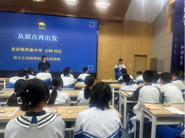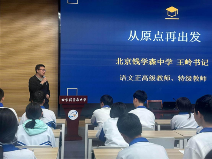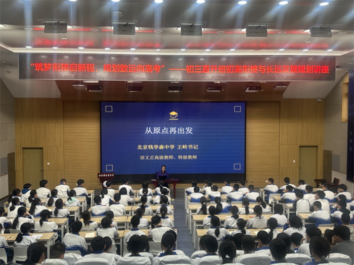 2026年4月2日,北京钱学森中学初三年级开展“筑梦衔接启新程,规划致远向高考”主题活动,特邀北京钱学森中学党委书记王岭,为全体直升班同学开展以“从原点再出发”为核心的专题讲座,为同学们的成长之路点亮明灯。