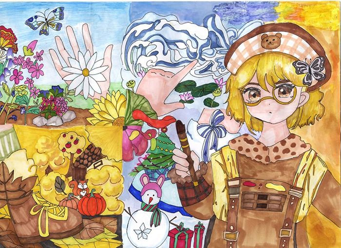 参展作品形式丰富,涵盖线描、色彩绘画、创意设计等,同学们以画笔为媒,描绘生活、畅想未来、传承文化,尽显扎实的美术素养与蓬勃朝气。