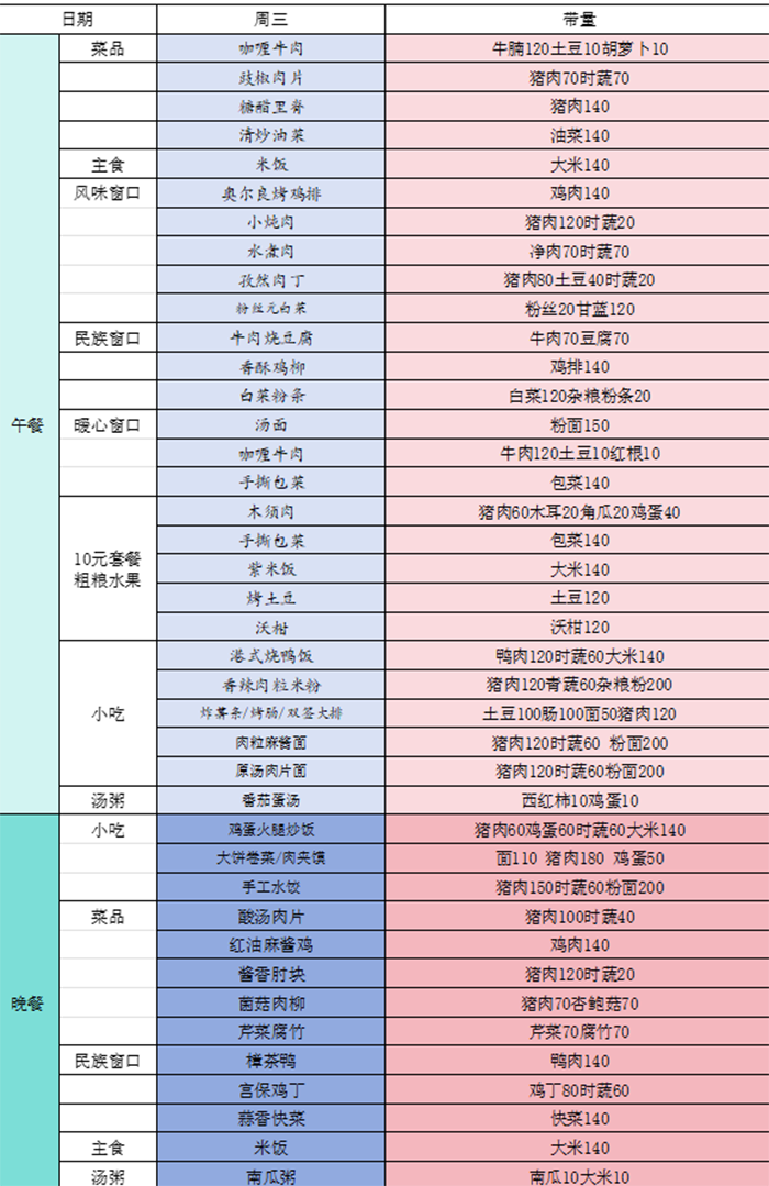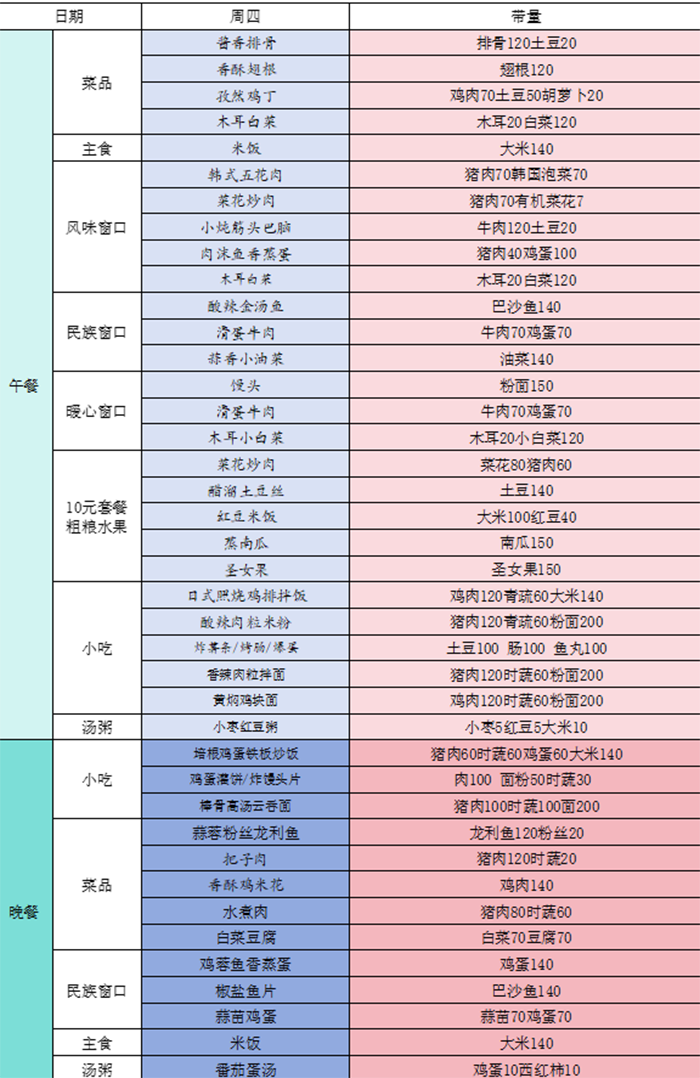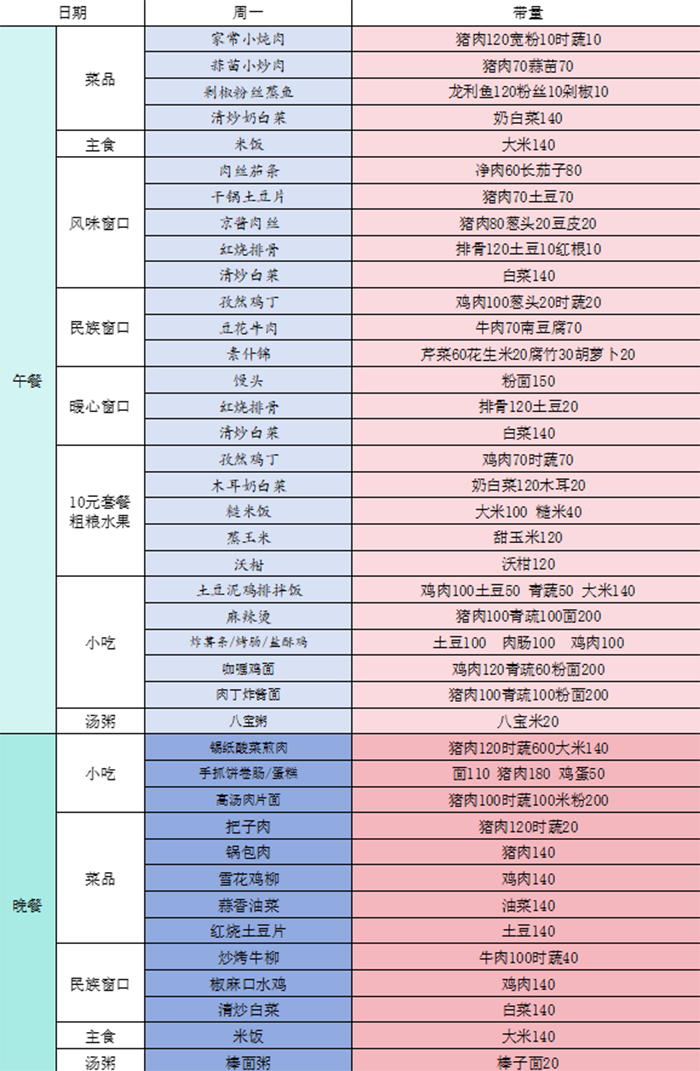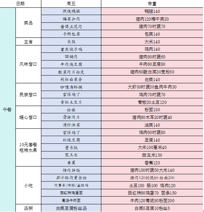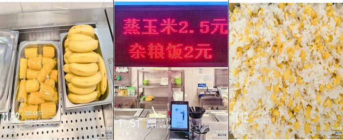 1.在主食方面,除保留白米饭外,在单独设立窗口供应粗粮主食,供同学们自由选择。