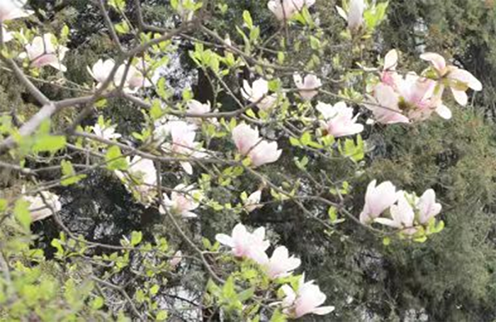 花期:3月中下旬至4月上旬(盛花期3月下旬)花朵简介:木兰科落叶乔木,花大瓣厚,有白玉兰(纯白素雅)、二乔玉兰(粉白相间)等品种,先花后叶,花香清浅淡雅。花瓣温润如玉,盛花期时亭亭玉立枝头,宛如春日画卷,是校园里最出片的打卡点之一。