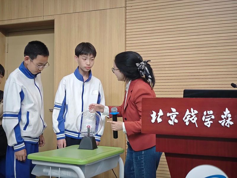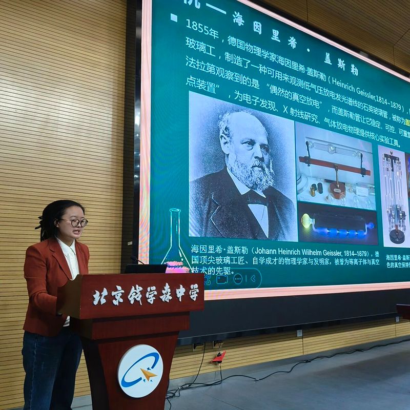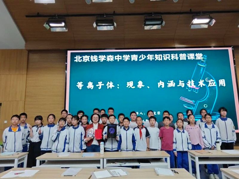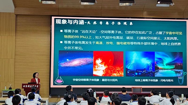 随后,樊博士带来北京钱学森中学青少年知识科普课堂——《等离子体:现象、内涵与技术应用》。她用通俗易懂的语言、生动直观的案例,带领孩子们解锁物质第四态“等离子体”的奥秘:从闪电、极光等天然等离子体现象,到霓虹灯、医疗消毒等人造等离子体应用;从法拉第、朗缪尔等科学家的探索历程,到中国EAST核聚变装置、BEST紧凑型聚变装置、CFETR聚变工程实验堆的重大突破,层层递进、妙趣横生。
