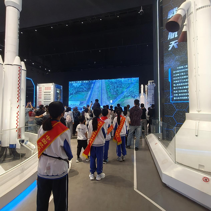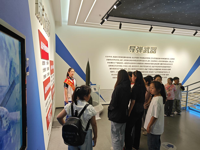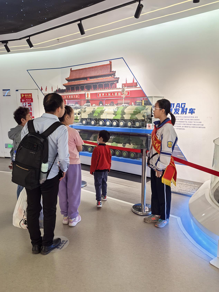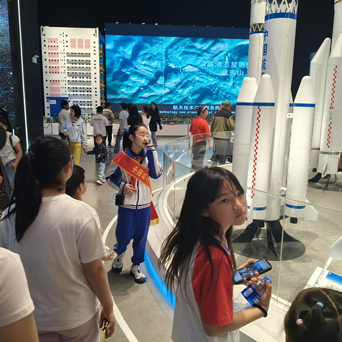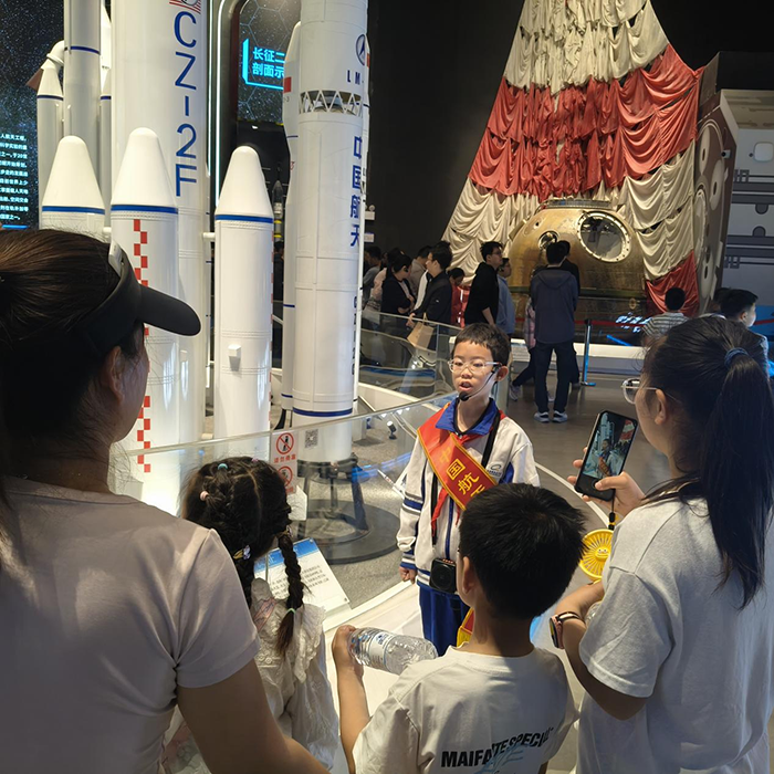 面对往来参观的游客,同学们耐心答疑、细致科普,用通俗易懂的语言,将专业的航天知识娓娓道来。从卫星发射原理到空间站建设成就,从钱学森先生的家国情怀到新时代航天人的追梦初心,稚嫩却坚定的声音回荡在展厅之中,让冰冷的航天展品有了温度,让厚重的航天精神得以鲜活传播。