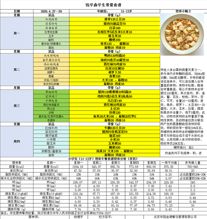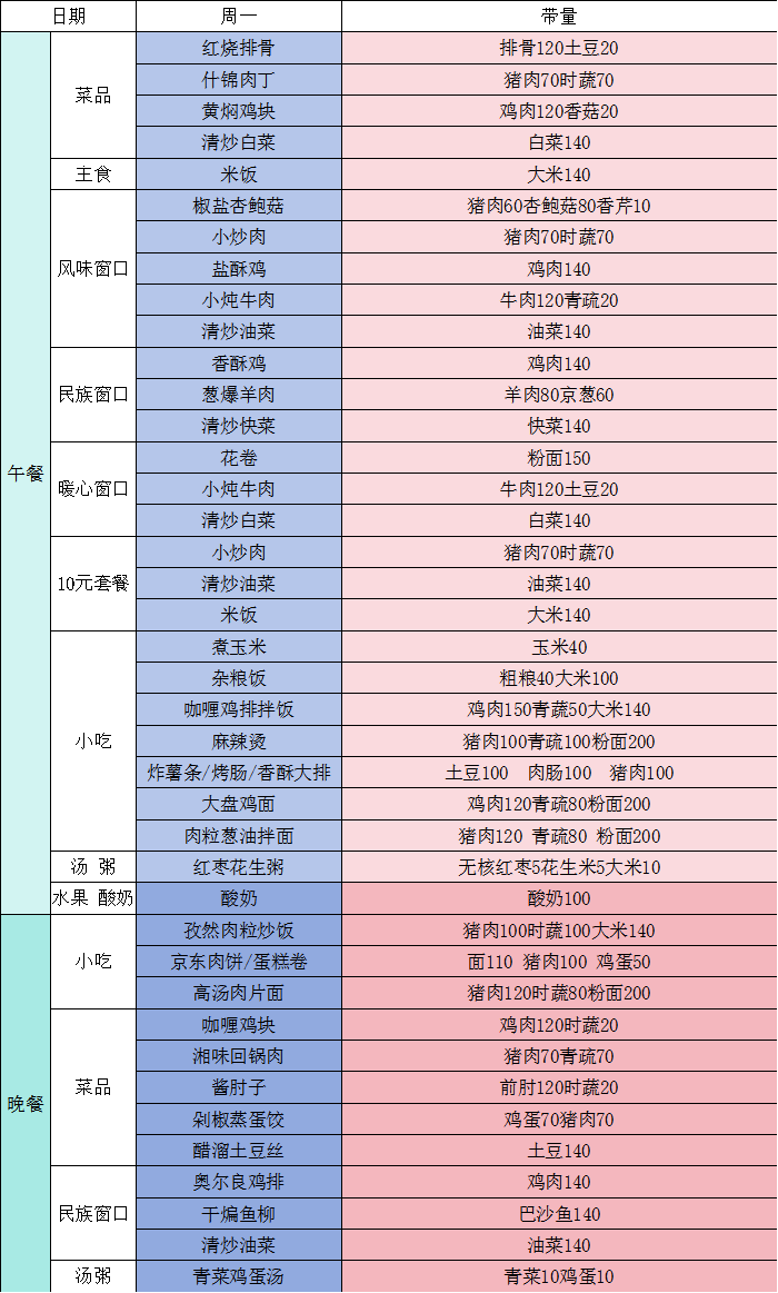 钱中一周食谱早知道!(第九周)