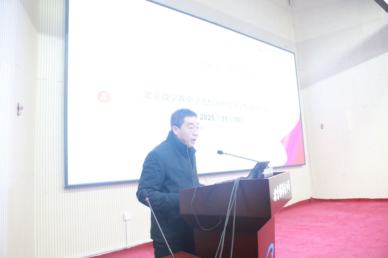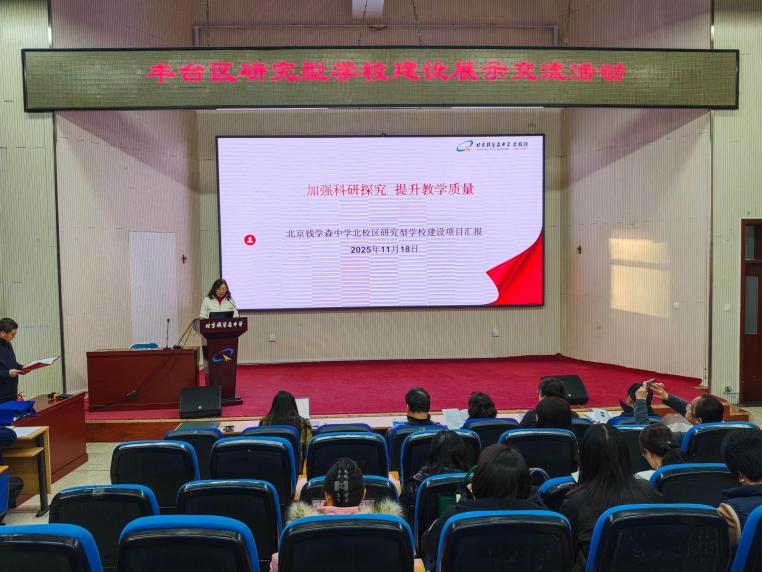 北京钱学森中学北校区徐红副校长围绕学校发展实际,以《加强科研探究 提升教学质量——研究型学校建设项目实施》为题作主题发言,立足学校深耕研究型办学的实践基础,以筑基赋能,构建系统化研修体系,激活教师科研动能;聚焦课堂革新核心方向,推进课题化教学实践,深化研究型课堂建设;融入学校航天特色,深耕航天科技与国家课程,构建特色课程体系;精准培育,打造优秀学生群体,夯实研究型学习基础,扎实落地研究型学校建设项目,持续提升教育教学质量与办学水平。