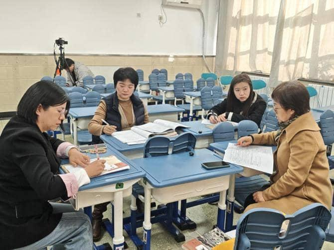 启动仪式之后,研讨会就进入到五个分会场的课堂教学展示环节,涉及的科目有初高中语文,数学,英语,物理和地理学科,这也是一种整体教研的方式。每一个学科三位教师呈现不同年级的课,与会学科专家分别走进不同会场进行听评课,学校的同学科教师们积极参与,认真学习,互相促进。